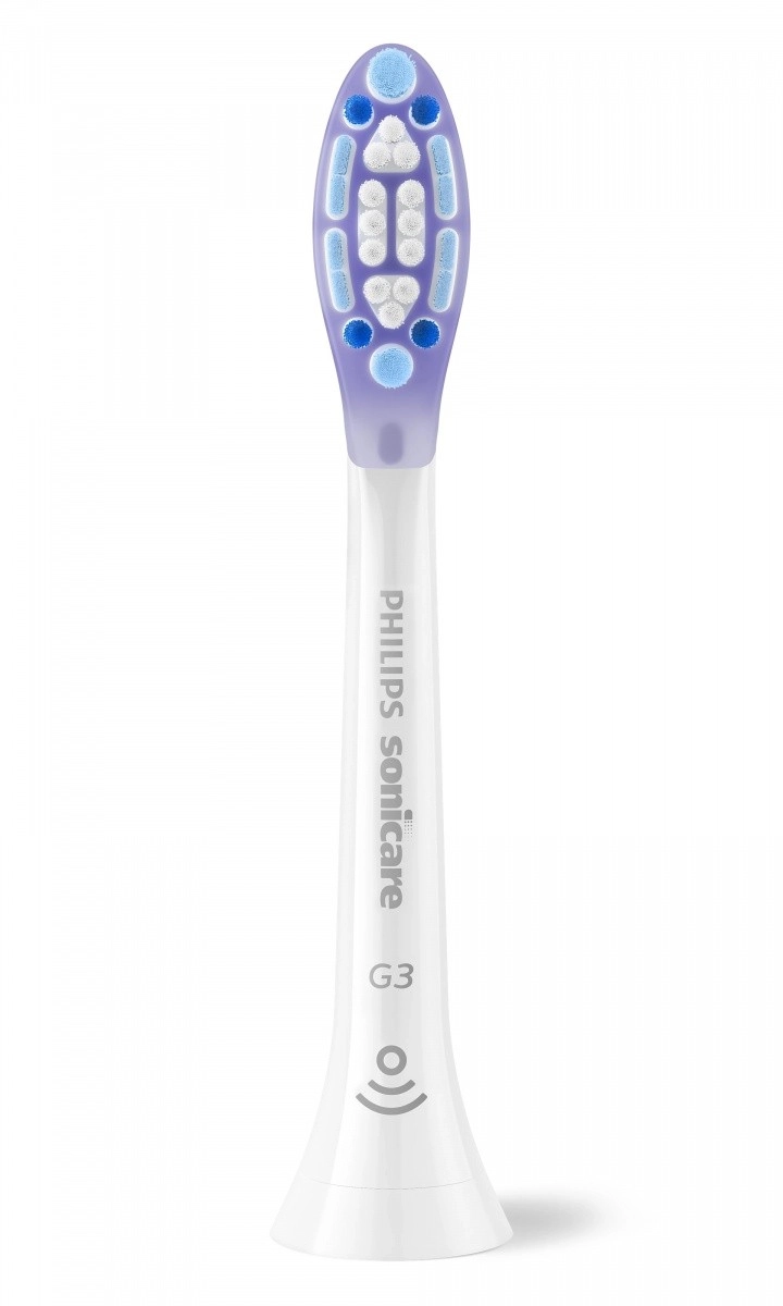 Hlavice PHILIPS Sonicare G3 Premium Gum Care sú navrhnuté pre citlivú líniu ďasien a špičkové čistenie každý deň. Konkávny tvar poľa štetín zvyšuje kontakt s ďasnami, zatiaľ čo viacúrovňové, jemné vlákna efektívne dosahujú do medzizubných priestorov a pozdĺž okraja ďasien. Sonická technológia s dynamickým prúdením tekutiny pomáha čistiť aj tam, kam sa vlákna nedostanú.