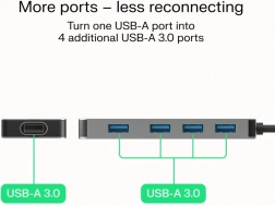 - Viac portov, menej prepájania: z jedného USB-A získate 4× USB-A 3.0.