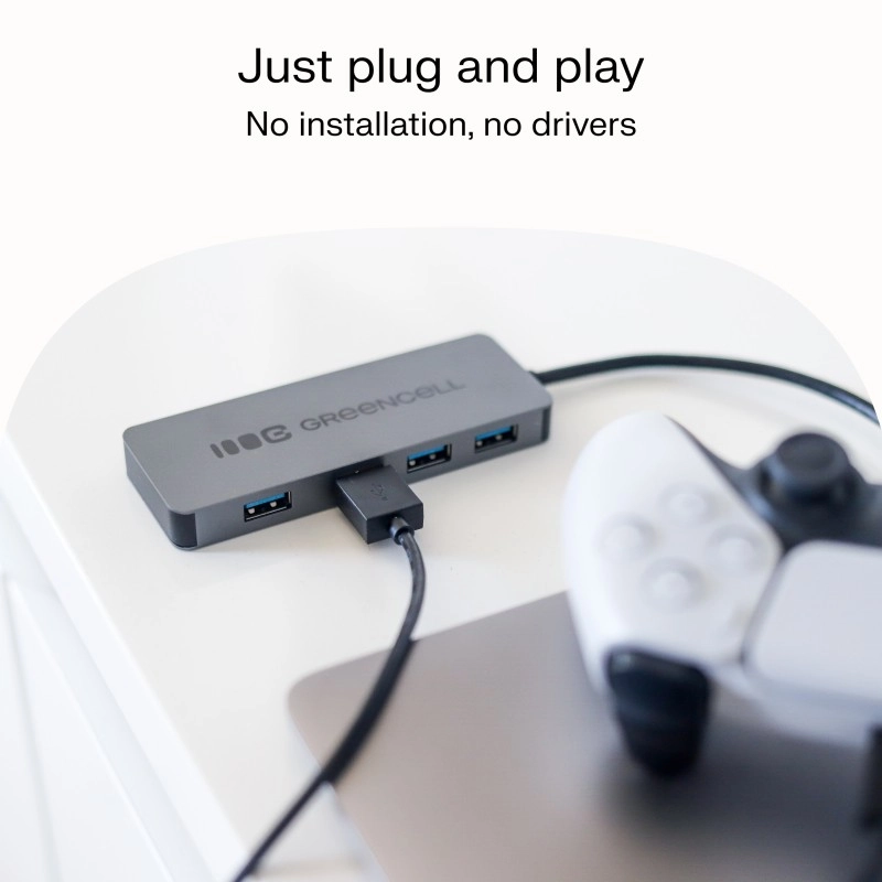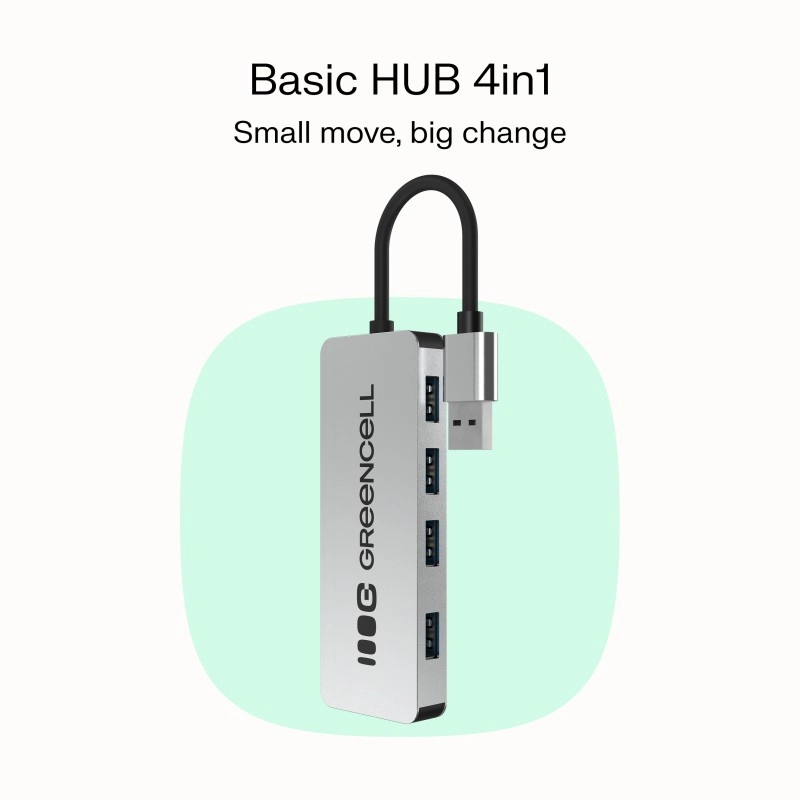 Rozšírte jeden port USB-A na štyri a získajte viac možností pripojenia bez prepájania. HUB GREENCELL Basic ponúka 4× USB 3.0, rýchly prenos dát až 5 Gb/s, kompaktné vyhotovenie s integrovaným káblom 15 cm a odolné hliníkové telo na každodenné používanie.