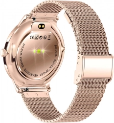 - Štíhly dizajn 7,9 mm, zlatá oceľová sieťovina, otočná korunka
