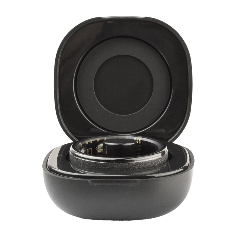Kompaktné puzdro s USB‑C umožní až 13× dobiť prsteň bez zásuvky. Výdrž prsteňa je 3–5 dní podľa používania.