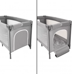 Bočné zipsové okienko uľahčuje prístup rodičom a deťom umožní samostatný výlez. Vo vnútri je matrac upevnený na suché zipsy, ktorý stabilizuje dno a zvyšuje komfort spánku. Po zložení je postieľka veľmi kompaktná a zmestí sa do kufra auta, priložená taška s ušami uľahčuje prenášanie aj skladovanie.