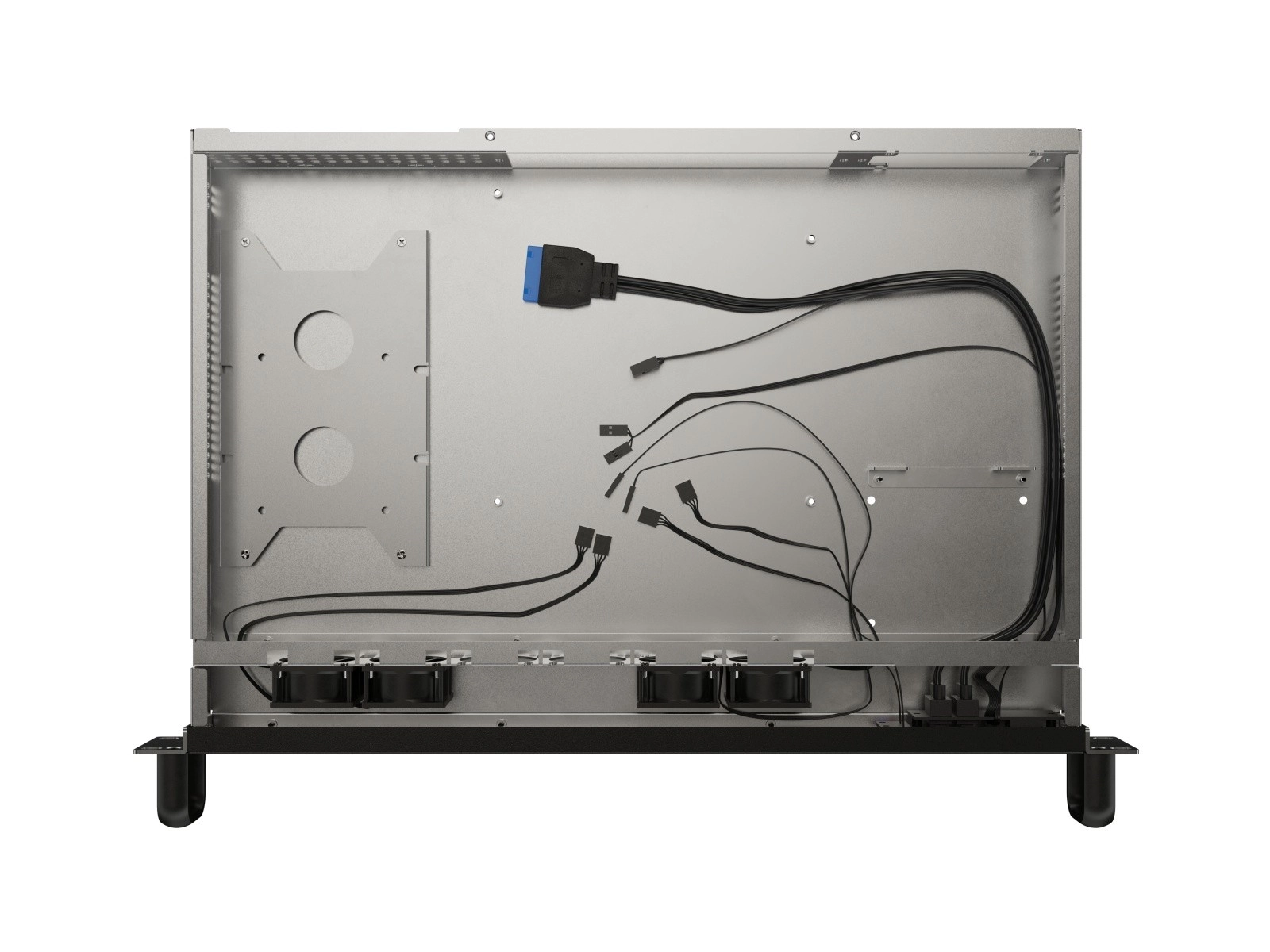 Perforovaný čelný panel a 4× 40 mm PWM ventilátory zabezpečujú stabilné teploty aj pri nepretržitej prevádzke s dôrazom na tichý chod a dlhú životnosť.