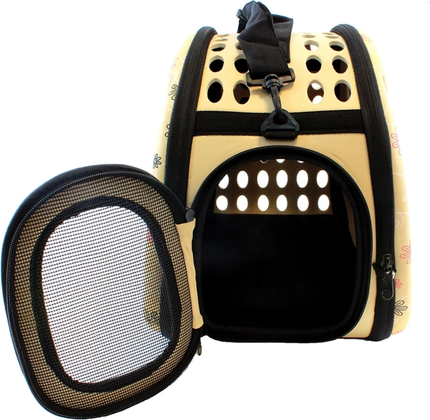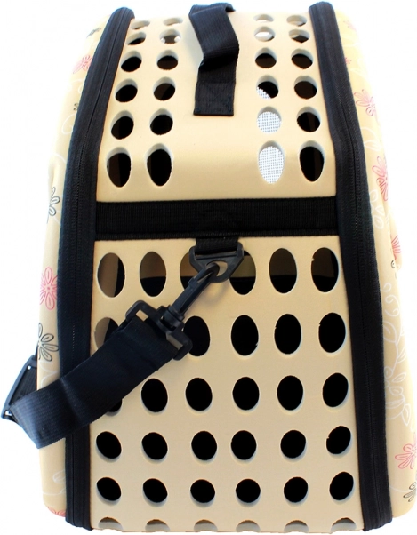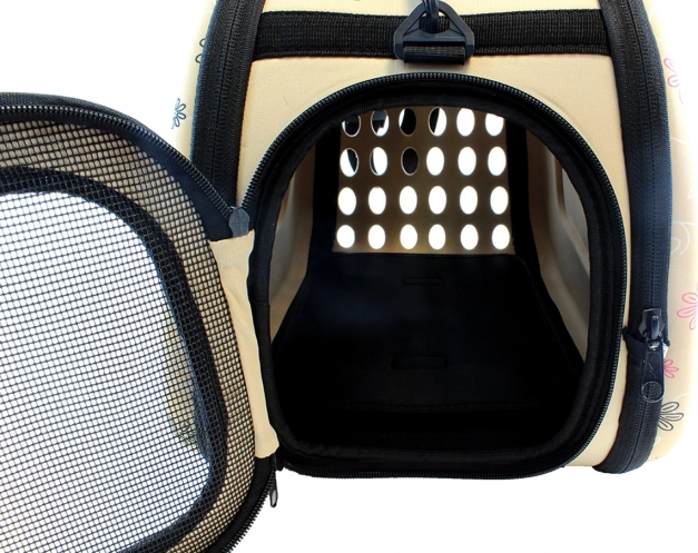 Vysokokvalitná prepravná taška pre malé domáce zvieratá. Je ideálna na presun menších zvierat na akúkoľvek vzdialenosť. Mimoriadne pohodlná konštrukcia zaistí pohodlie nám aj zvieraťu. Pevný materiál, z ktorého bol nosič vyrobený, a pevná rukoväť, rovnako ako nastaviteľný ramenný popruh, zabezpečujú dlhé a bezproblémové používanie výrobku. Taška je vzdušná a bezpečná pre nášho miláčika vďaka ventilačnému systému. Pohodlné používanie zaistí aj dvojitý zips na oboch stranách prepravky.