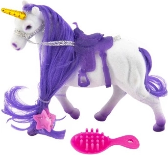 Tento elegantný jednorožec poteší každé dieťa, ktoré miluje čarovné stvorenia a svet fantázie. Vďaka mäkkej hebkej úprave a česacej hrive si malí kaderníci užijú množstvo kreatívnej zábavy. Súčasťou sú tiež doplnky na úpravu hrivy a sedlo na pohodlné vychádzky v imaginárnom svete.