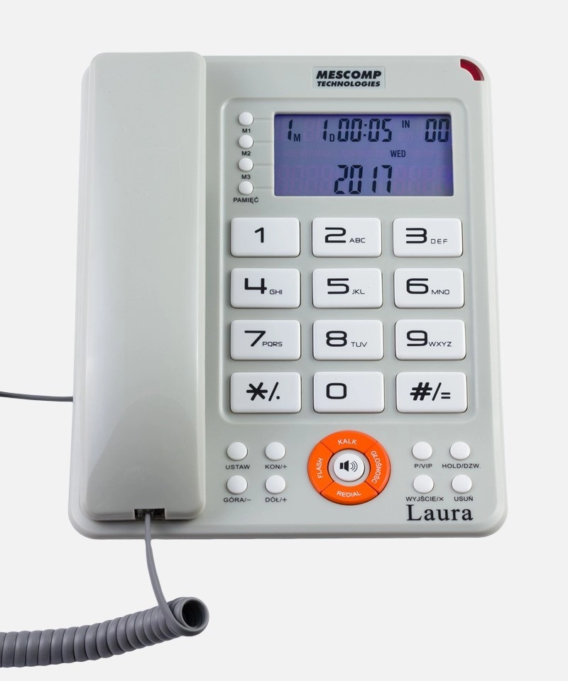 Mescomp Laura MT-816 kombinuje moderný vzhľad s maximálnou prehľadnosťou a jednoduchým ovládaním. Vďaka podsvietenému displeju s nastavením kontrastu a veľkým klávesom je vhodný pre seniorov aj používateľov so zhoršeným zrakom. V kancelárii oceníte históriu hovorov, redial aj funkciu VIP na ochranu dôležitých kontaktov.