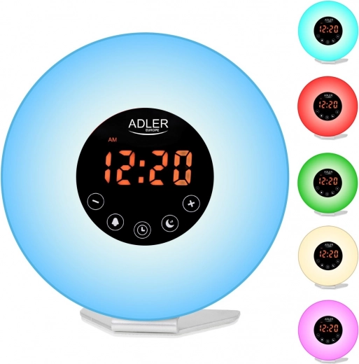 Večer oceníte režim zaspávania so step-down stmievaním a časovačom na 15/30/60 minút. Šesť farebných režimov (modrá, oranžová, indigo, fialová, červená, zelená) vytvorí príjemnú atmosféru a poslúži aj ako lampička. Displej má 4 úrovne jasu (vysoký/stredný/nízky/vypnuté), takže v noci neruší.