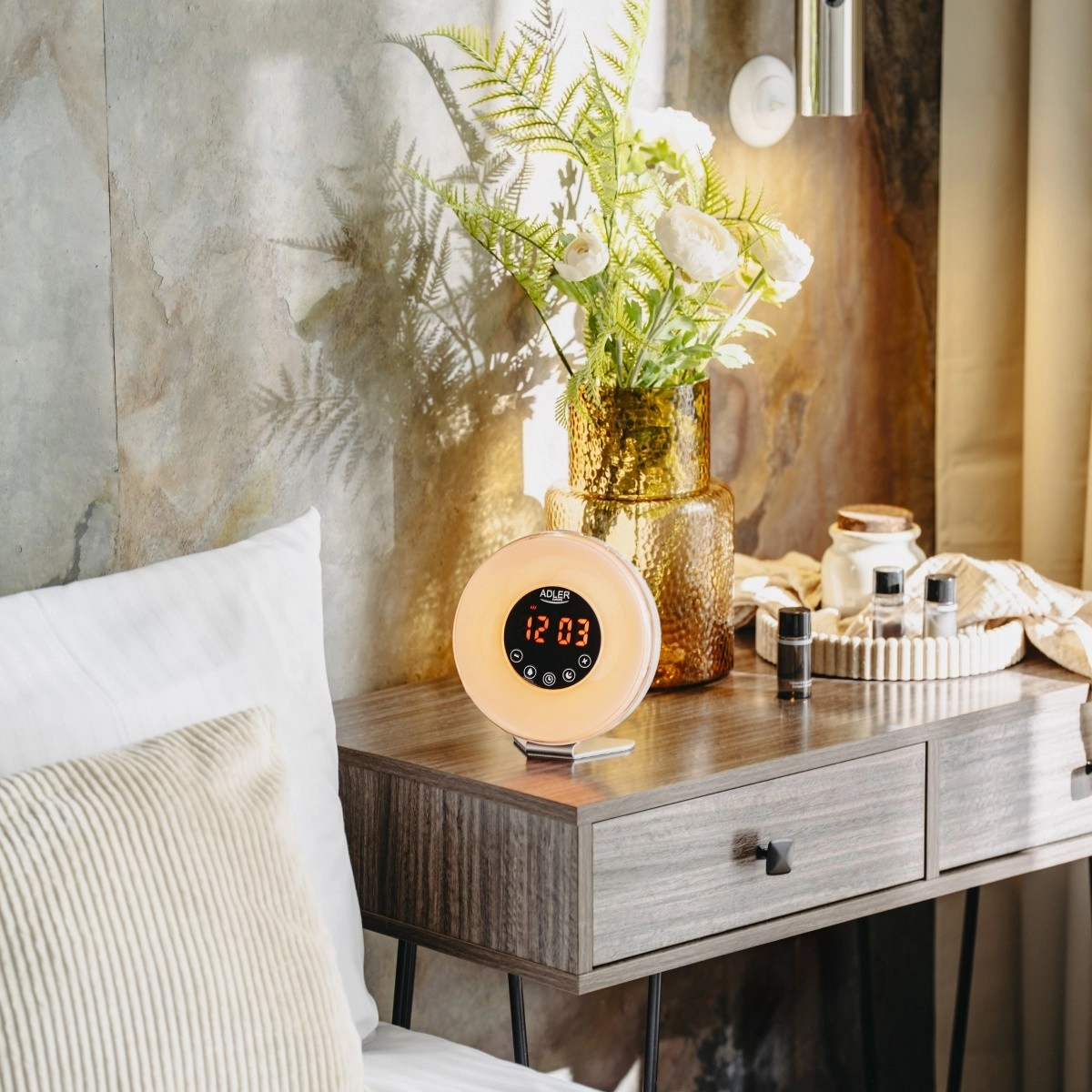 Budík postupne zosilňuje svetlo, aby vás zobudil jemne a bez stresu. Podporuje správny spánkový rytmus a príjemnejšie rána.