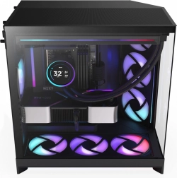 NZXT H9 Flow RGB je priestranná mid‑tower ATX skriňa pre výkonné zostavy, ktorá kombinuje špičkové chladenie, panoramatické tvrdené sklo a dvojkomorovú konštrukciu pre perfektný manažment káblov. Ponúka podporu až 10 ventilátorov, kompatibilitu s radiátormi do 420 mm a je pripravená na Back‑Connect základné dosky (ASUS BTF, MSI Project Zero).