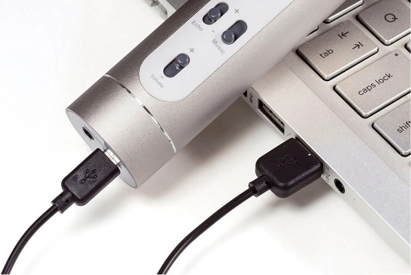 - karaoke mikrofón, USB–Micro USB nabíjací kábel, audio kábel, návod