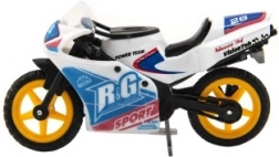 Modelová pretekárska motorka meria 8 cm a je vyrobená z kombinácie kovu a plastu. Skvelá pre deti od 3 rokov, podporuje kreatívnu a imaginatívnu hru. Motorka je balená na karte a je k dispozícii v niekoľkých rôznych farebných prevedeniach.