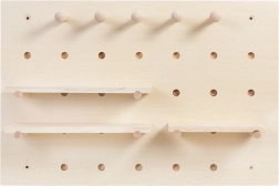 Praktický nástenný organizér z prírodného dreva a drevotriesky s rozmermi 40 × 60 cm ponúka variabilné uloženie vďaka otvorom pre kolíky, 3 poličkám a 5 háčikom. Jednoducho prispôsobíte usporiadanie kľúčov, doplnkov či náradia a vďaka nosnosti až 20 kg sa hodí do predsiene, kuchyne, pracovne aj dielne.