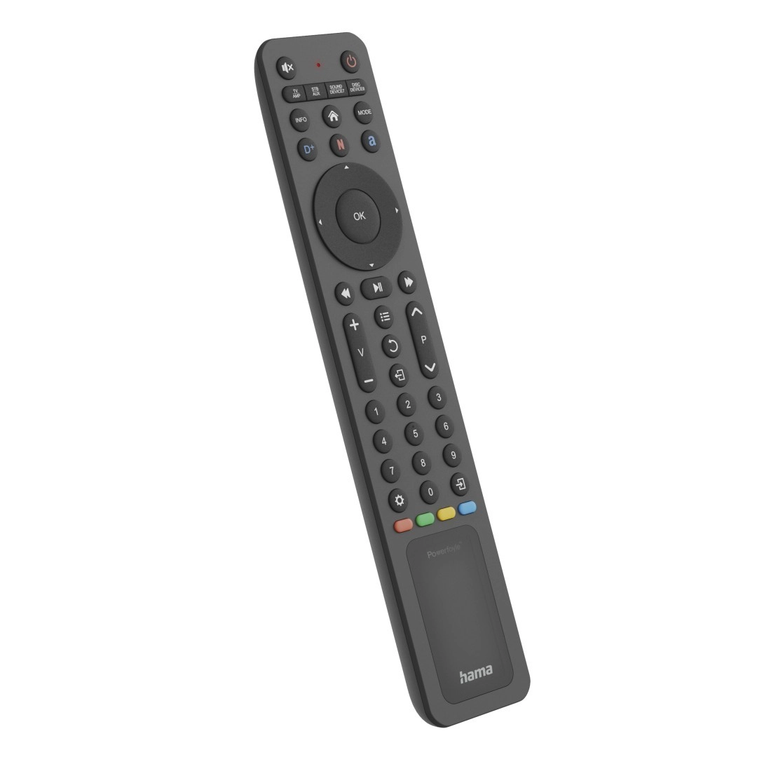 Pre okamžité prehrávanie slúžia tlačidlá rýchleho prístupu k službám ako NETFLIX, AMAZON PRIME VIDEO či DISNEY+. Udržateľná konštrukcia z viac než 20 % recyklovaných materiálov s ergonomickým tvarom zaručuje pohodlné držanie a zodpovednú prevádzku bez jednorazových batérií.