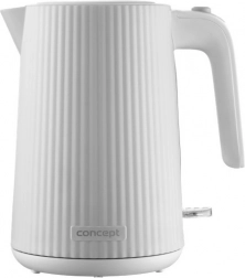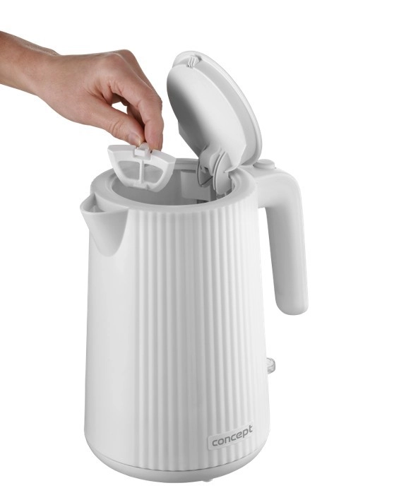 Táto biela rýchlovarná kanvica z odolného plastu kombinuje moderný ryhovaný vzhľad s praktickými funkciami na každodenné používanie. Objem 1,7 litra pohodlne vystačí pre celú rodinu, zatiaľ čo podsvietený spínač jasne signalizuje prevádzku. Veľké priehľadné okienko na kontrolu hladiny vody zaisťuje maximálny prehľad.
