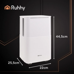 Výkonný odvlhčovač vzduchu RUHHY DRYZIX pre miestnosti okolo 30 m² spoľahlivo znižuje vlhkosť a pomáha predchádzať plesniam. Vďaka automatickému režimu, hygrostatu, časovaču a ovládaniu cez Wi‑Fi udržíte ideálnu klímu bez námahy. Tichá prevádzka (38 dB), automatické odmrazovanie, detská poistka a kolieska na jednoduché presúvanie z neho robia skvelé riešenie do spálne, pivnice aj technickej miestnosti.