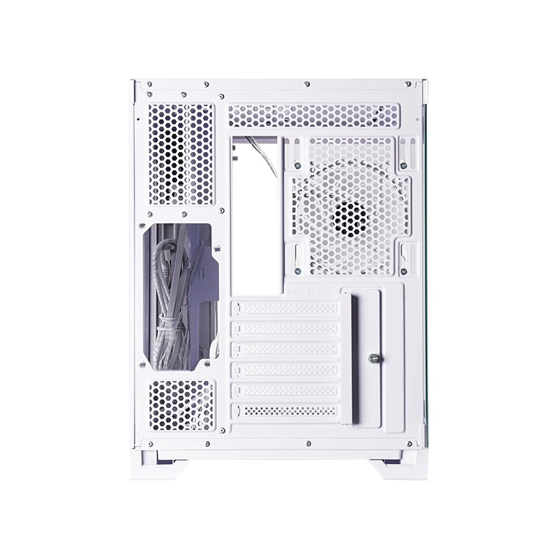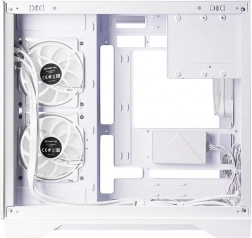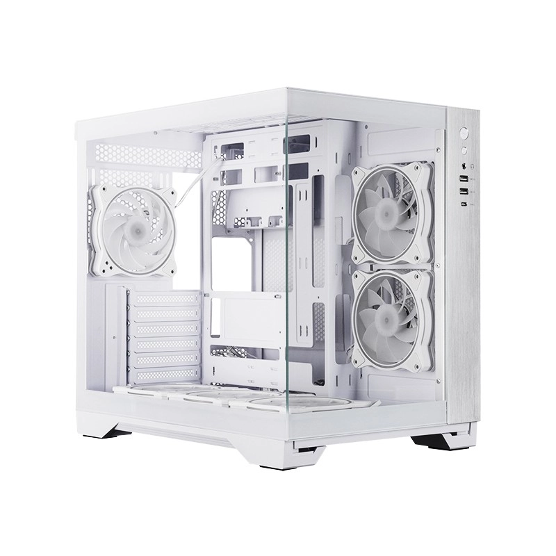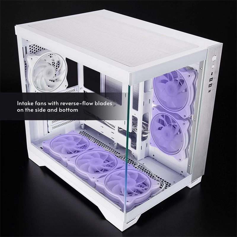 Predný aj bočný panel z tvrdeného skla nechajú vyniknúť komponenty a ARGB osvetlenie. Dvojkomorové usporiadanie skryje kabeláž a podporí prietok vzduchu.