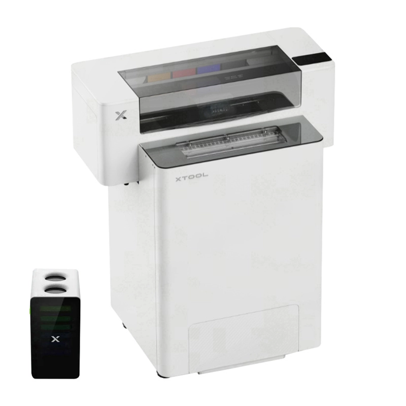 Kompletný workflow „Print‑to‑Bake“: tlač, nanesenie lepiaceho prášku, vyrovnanie a zapekanie zaručí pružné, odolné a stálofarebné výtlačky. Automatická OS1 Shaker Oven šetrí prášok vďaka recyklácii a obojsmernému prevádzkovému režimu. Čistička vzduchu SafetyPro AP2 účinne odstraňuje prach a pachy. Softvér xTool Creative Space (AI Design, RIP, Auto Nesting, Layout) zjednodušuje prípravu dát aj riadenie tlače.
