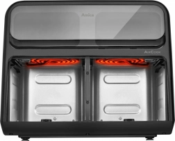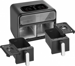 Upečte chrumkavé hranolky, šťavnaté mäso aj krehké pečivo s minimom oleja vďaka dvojzónovej teplovzdušnej fritéze. Dve nezávislé komory umožnia pripraviť rôzne pokrmy súčasne, zatiaľ čo praktické okienko a dotykový panel s LED displejom zaistia plnú kontrolu nad teplotou a časom. Využijete bohatú ponuku režimov ako AirFry, Bake, Roast či Dehydrate, funkcie Synchronizácia a Dvojitá kapacita ušetria čas a bezpečnostné prvky ako automatické vypnutie a ochrana proti prehriatiu dodajú pokoj pri varení.