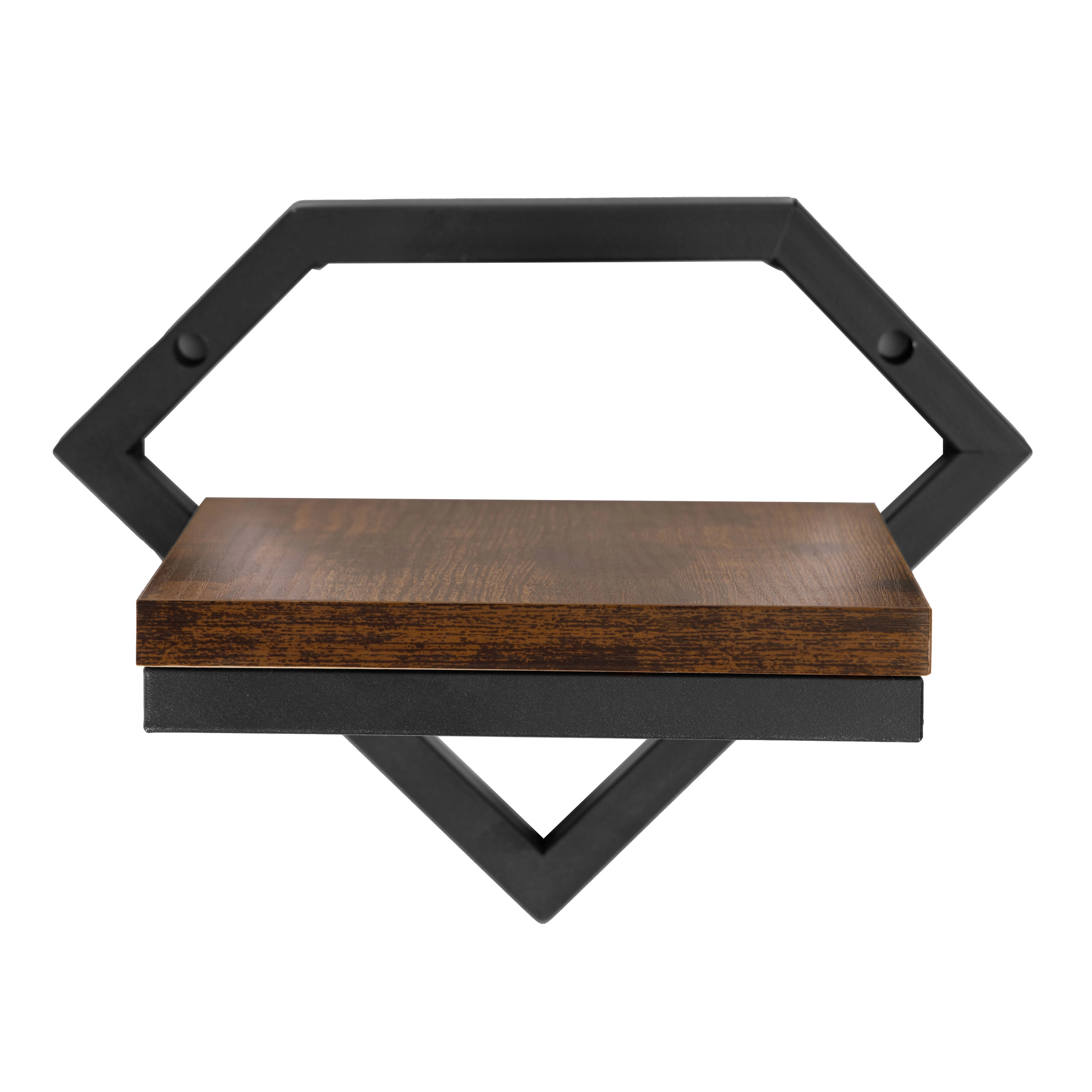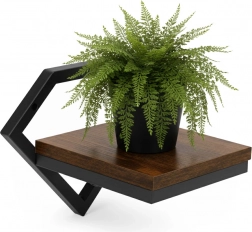 Geometrický diamantový rám v matnej čiernej a doska v dekore dreva vytvárajú výrazný loftový prvok, ktorý sa hodí do obývačky, kuchyne aj kúpeľne.