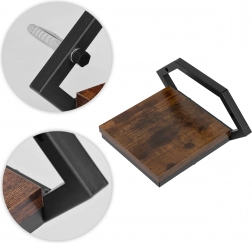 Rám z práškovolakovanej ocele je odolný proti korózii a mechanickému opotrebeniu, drevotriesková doska v dekore dreva dodáva teplo a kontrast. Súčasťou balenia je kompletná montážna sada (hmoždinky, skrutky a krytky), takže všetko potrebné máte hneď po ruke.
