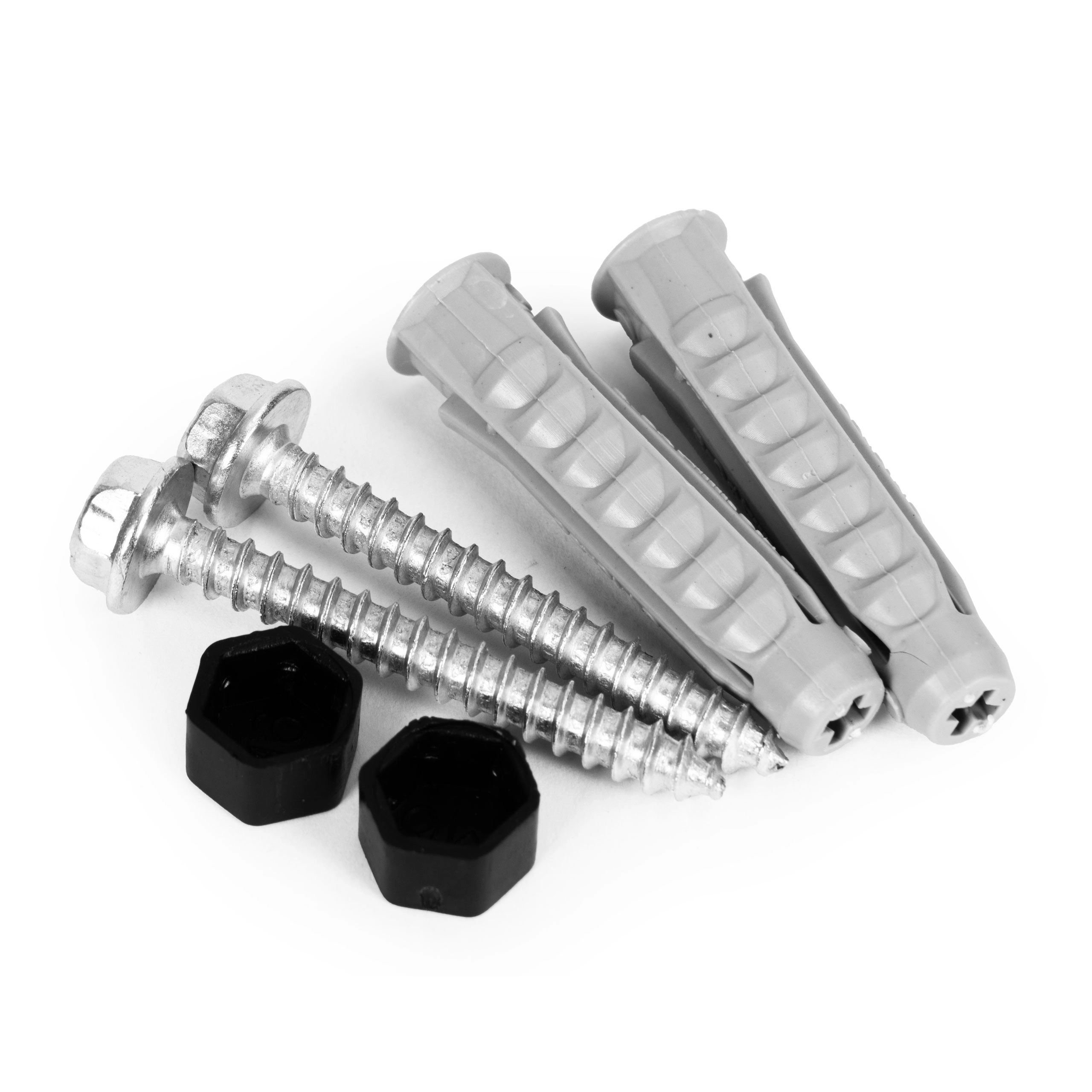 Montážne otvory, skrutky, hmoždinky aj krytky sú súčasťou sady. Rýchla a istá inštalácia na väčšinu typov stien.