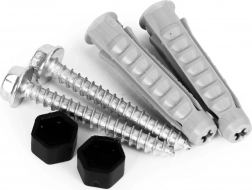 Súčasťou balenia sú skrutky, hmoždinky a krytky. Predvŕtané otvory v ráme zabezpečia pevné ukotvenie a stabilitu až do 5 kg.