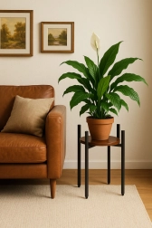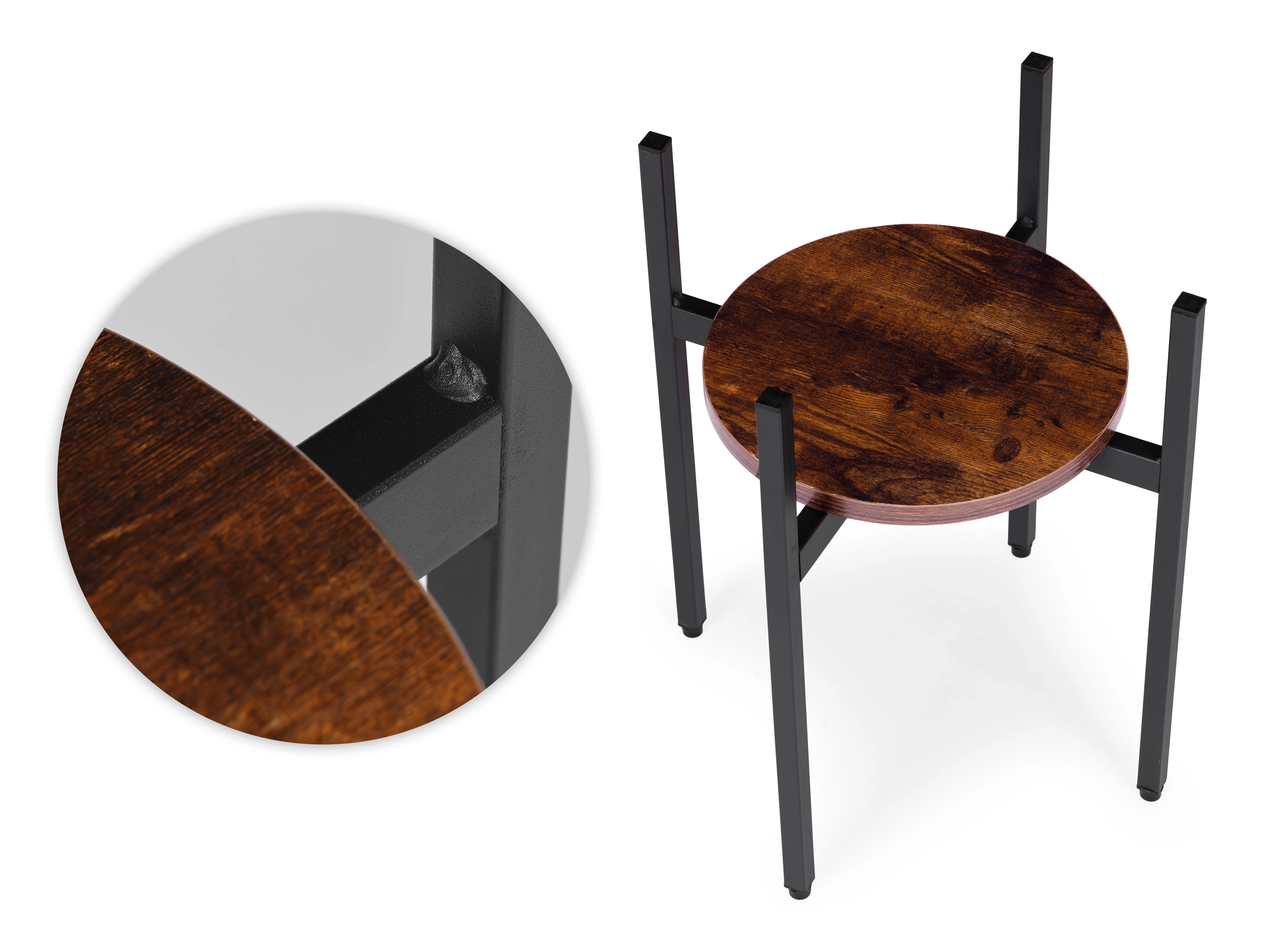 Vystavte svoje obľúbené rastliny štýlovo a s dôrazom na priestor. Tento stojan v industriálnom duchu kombinuje práškovú lakovanú oceľ pre dlhú životnosť a odolnosť proti korózii s policou z drevotriesky v dekore prírodného dreva. Skvelo zapadne do moderných aj minimalistických interiérov a podčiarkne zeleň v každej miestnosti.