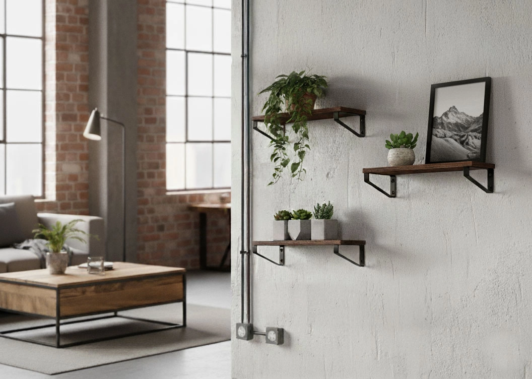 Kombinácia tmavého dreva a čiernych oceľových držiakov vytvára výrazný LOFT vzhľad, ktorý ladí s moderným aj klasickým zariadením.