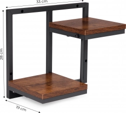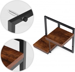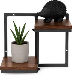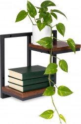 Skrášlite svoj interiér praktickou a modernou závesnou policou v štýle loft. Minimalistický čierny rám z práškom lakovanej ocele a dve odolné police s dekorom dreva vytvoria štýlový priestor pre vaše rastliny, knihy alebo menšie dekorácie. Vďaka kompaktným rozmerom sa hodí do obývačky, kuchyne aj kúpeľne.