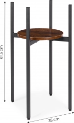 Tento vysoký stojan na kvety v industriálnom štýle zvýrazní vaše rastliny a dodá interiéru vzdušnosť aj eleganciu. Práškovo lakovaná oceľ je odolná proti korózii aj poškriabaniu, zatiaľ čo kruhová polica z drevotriesky v dekore prírodného dreva podčiarkuje loftový charakter. Vďaka štíhlej pôdorysnej stope ľahko zapadne do malých priestorov pri okne, vedľa pohovky či do vstupnej haly.
