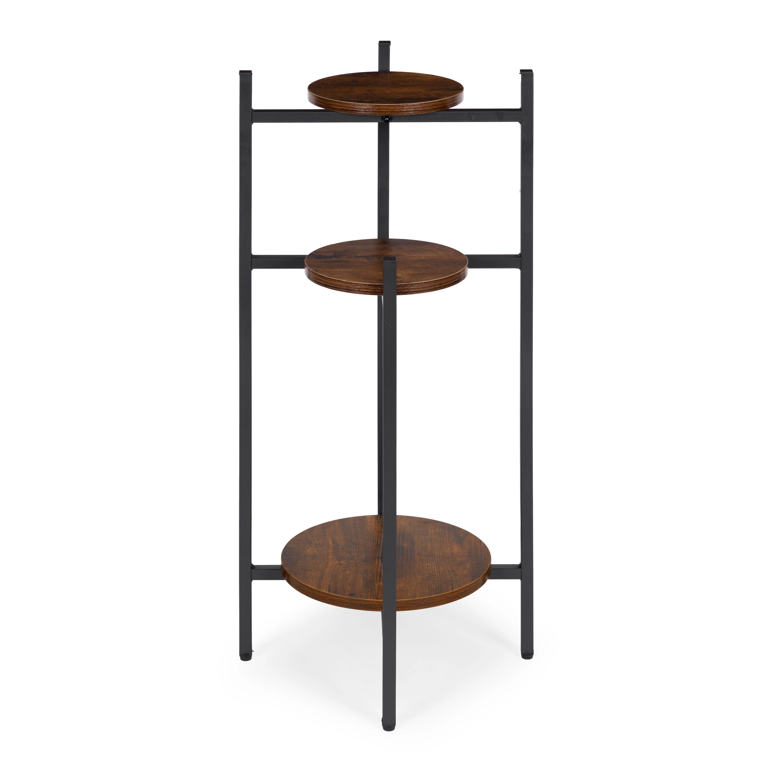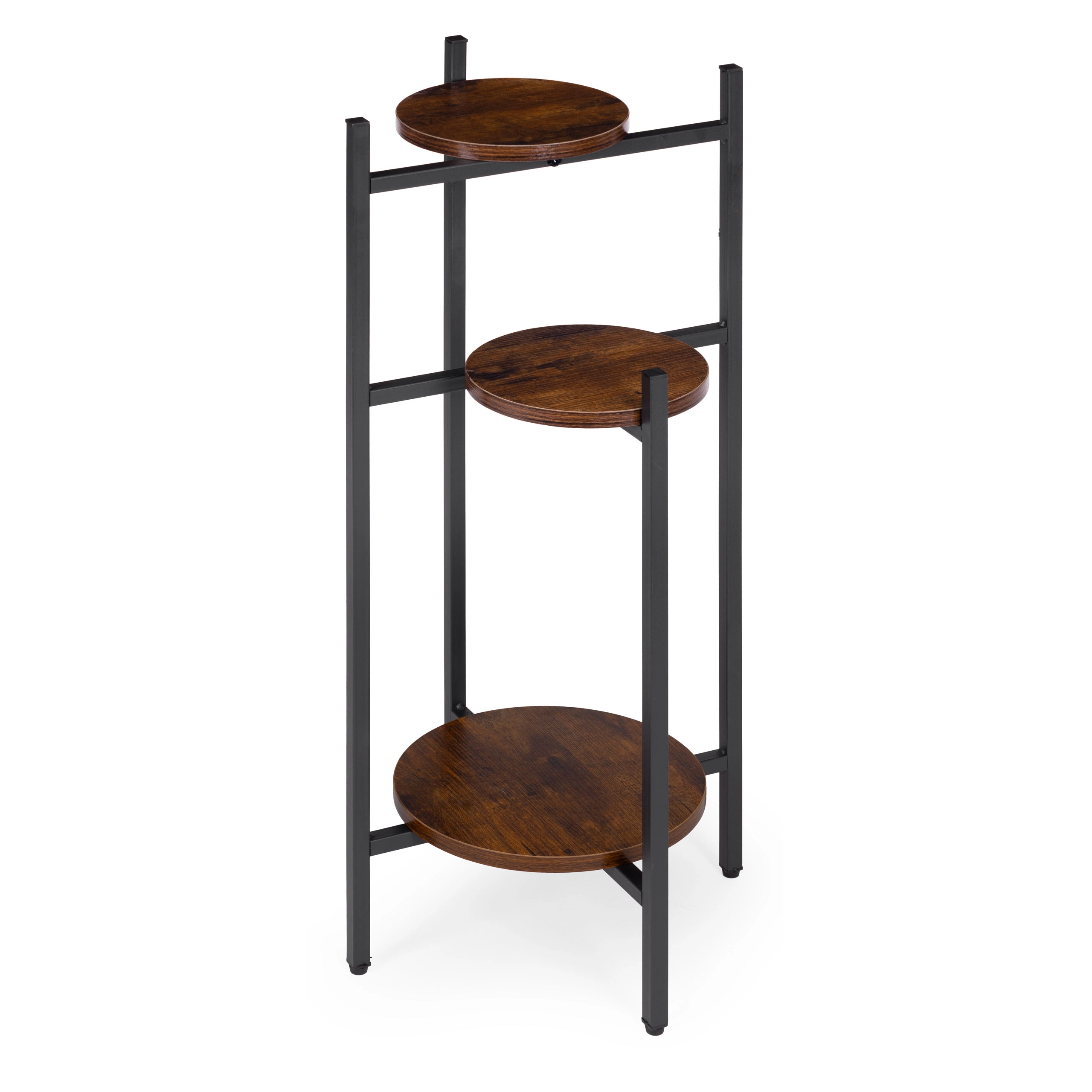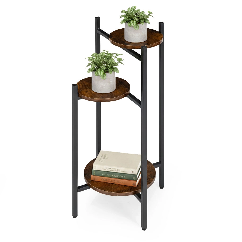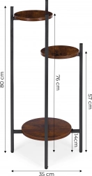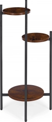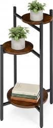 Štýlový trojposchodový stojan na kvety v industriálnom loft štýle kombinuje pevnú oceľovú konštrukciu s drevo dekorom políc. Vďaka kompaktným rozmerom a vertikálnemu usporiadaniu šetrí miesto v obývačke, kancelárii aj na balkóne, ponúka stabilitu, protišmykové nožičky a nosnosť až 15 kg.