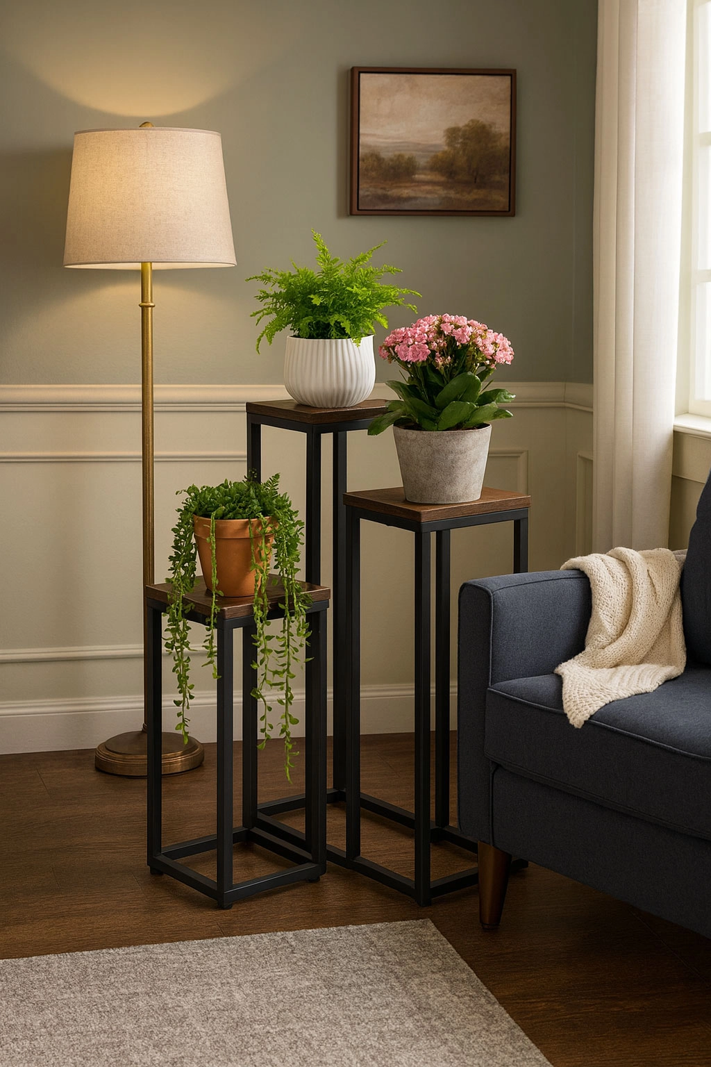 Vystavte svoje obľúbené izbové rastliny štýlovo a prehľadne. Loftový stojan na kvety kombinuje industriálny vzhľad s praktickým riešením na každodenné používanie – tri výškovo odstupňované police uľahčia starostlivosť o rastliny, zlepšia prístup k svetlu a zútulnia interiér. Vďaka univerzálnym rozmerom sa hodí do obývačky, pracovne, chodby aj kuchyne na bylinky.
