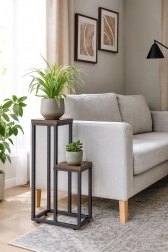 Vystavte svoje obľúbené kvety, bylinky či dekorácie štýlovo a prehľadne. Stojan na kvety v loft dizajne kombinuje moderný vzhľad s odolným spracovaním, takže sa hodí do každého interiéru – od obývacej izby cez kuchyňu až po pracovňu. Dve rôzne výšky políc umožnia efektné aranžmány previsnutých aj vzpriamených rastlín.