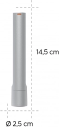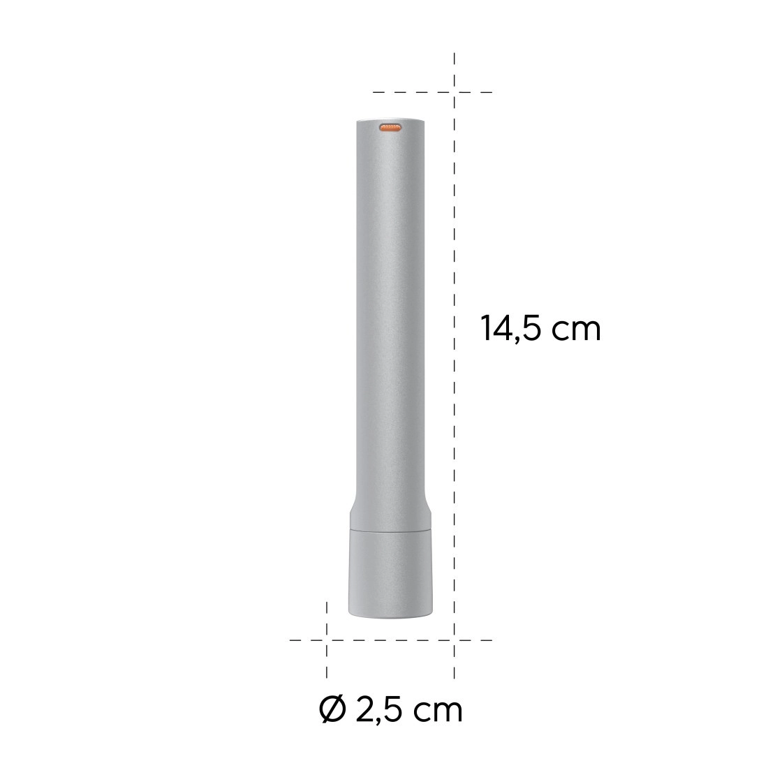 Štíhle kovové telo s pútkom na zápästie sa pohodlne drží a ľahko prenáša – vždy pripravené po ruke.