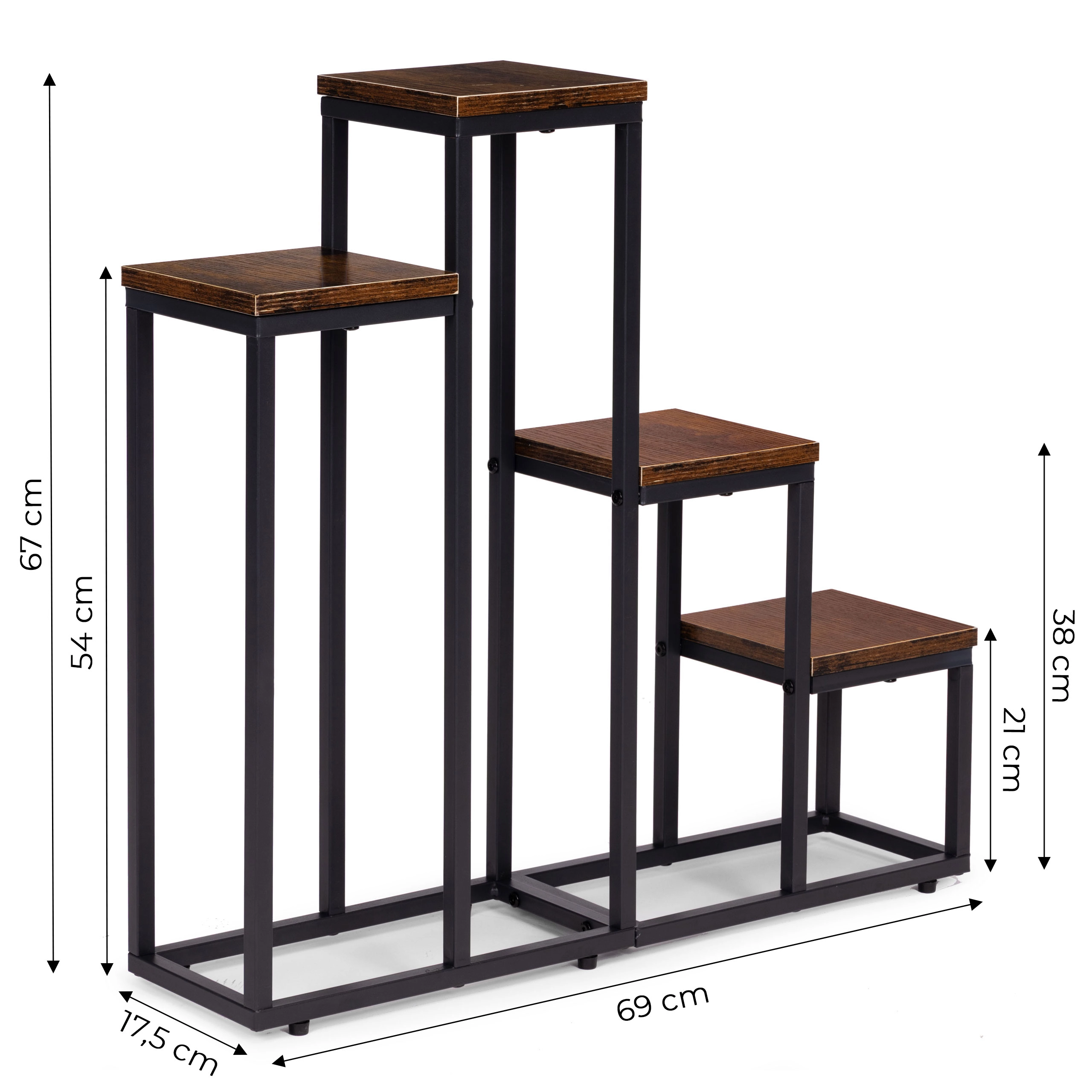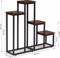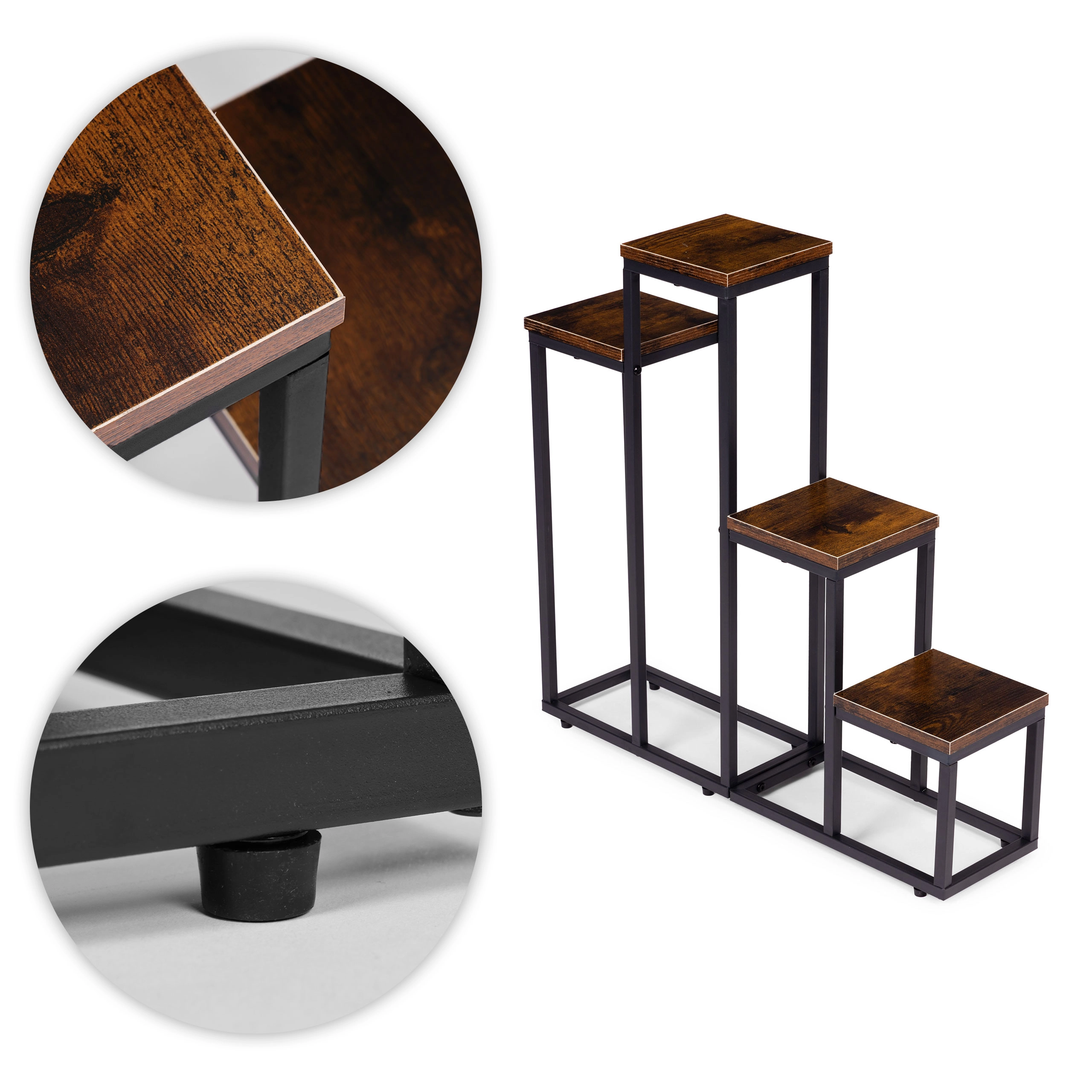 Vytvorte si zelený kútik, ktorý vynikne. Tento loftový stojan na kvety kombinuje moderný industriálny dizajn s odolnou oceľovou konštrukciou a policami v dekore dreva. Vďaka kompaktným rozmerom ľahko využijete priestor a usporiadate rastliny do prehľadných úrovní – od byliniek v kuchyni po dekoratívne kvety v predsieni.