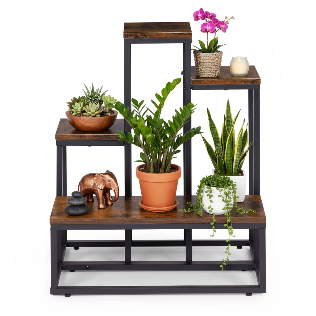 Vystavte svoje obľúbené rastliny štýlovo a prehľadne. Stojan na kvety v industriálnom dizajne sa vďaka univerzálnemu prevedeniu ľahko začlení do moderného interiéru aj domácej kancelárie. Viacúrovňové usporiadanie podporuje lepší prístup k svetlu a umožní vytvoriť elegantnú zelenú kompozíciu v každej miestnosti.