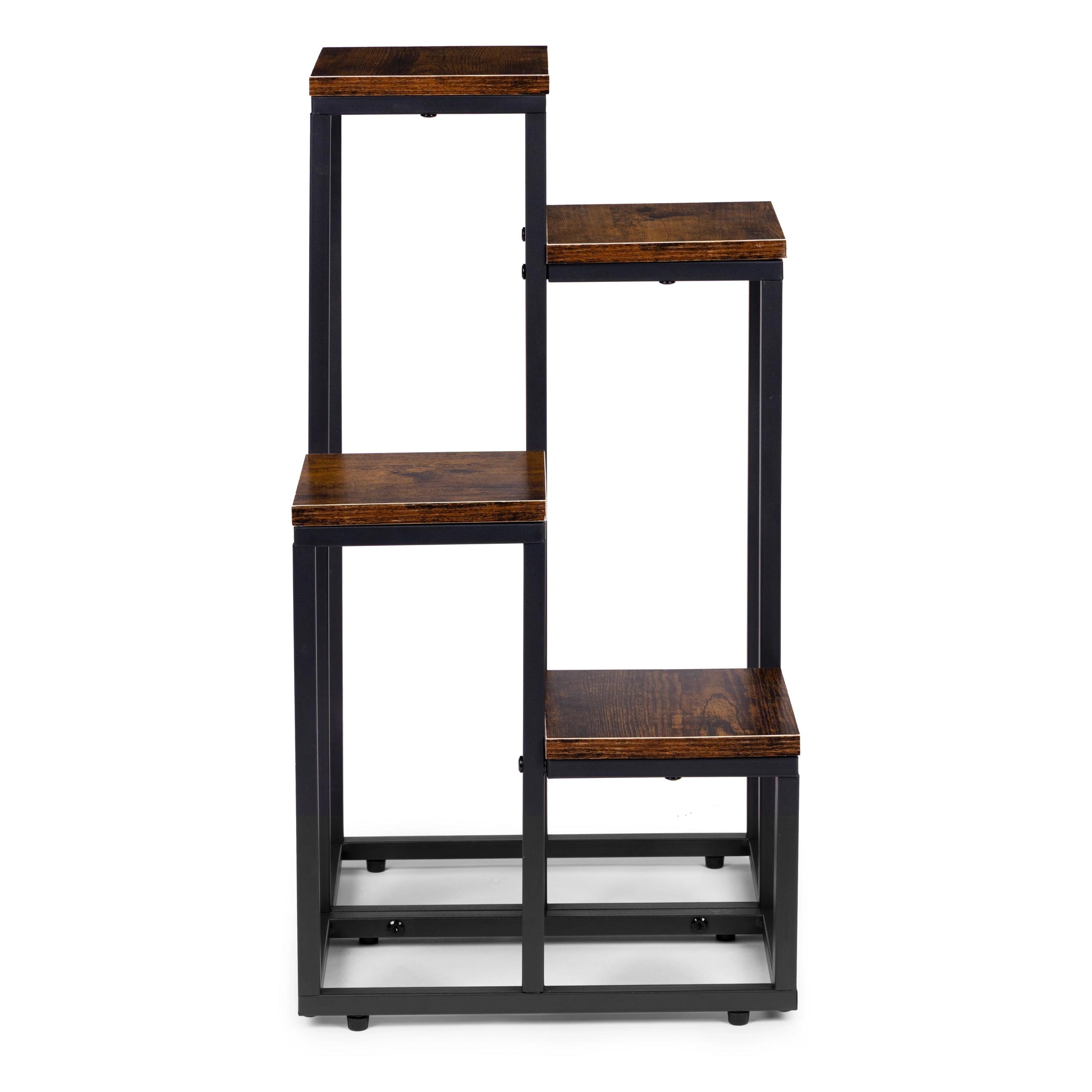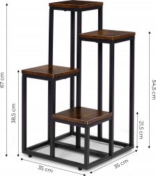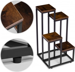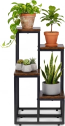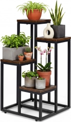 Vytvorte si domácu džungľu s minimalistickým nádychom. Tento loftový stojan na kvety kombinuje pevný oceľový rám s policami z drevotriesky v dekore dreva, takže skvelo zapadne do moderných aj industriálnych interiérov. Viacúrovňové usporiadanie zlepšuje prístup k svetlu a umožní atraktívnu kompozíciu byliniek, sukulentov aj previsnutých rastlín.