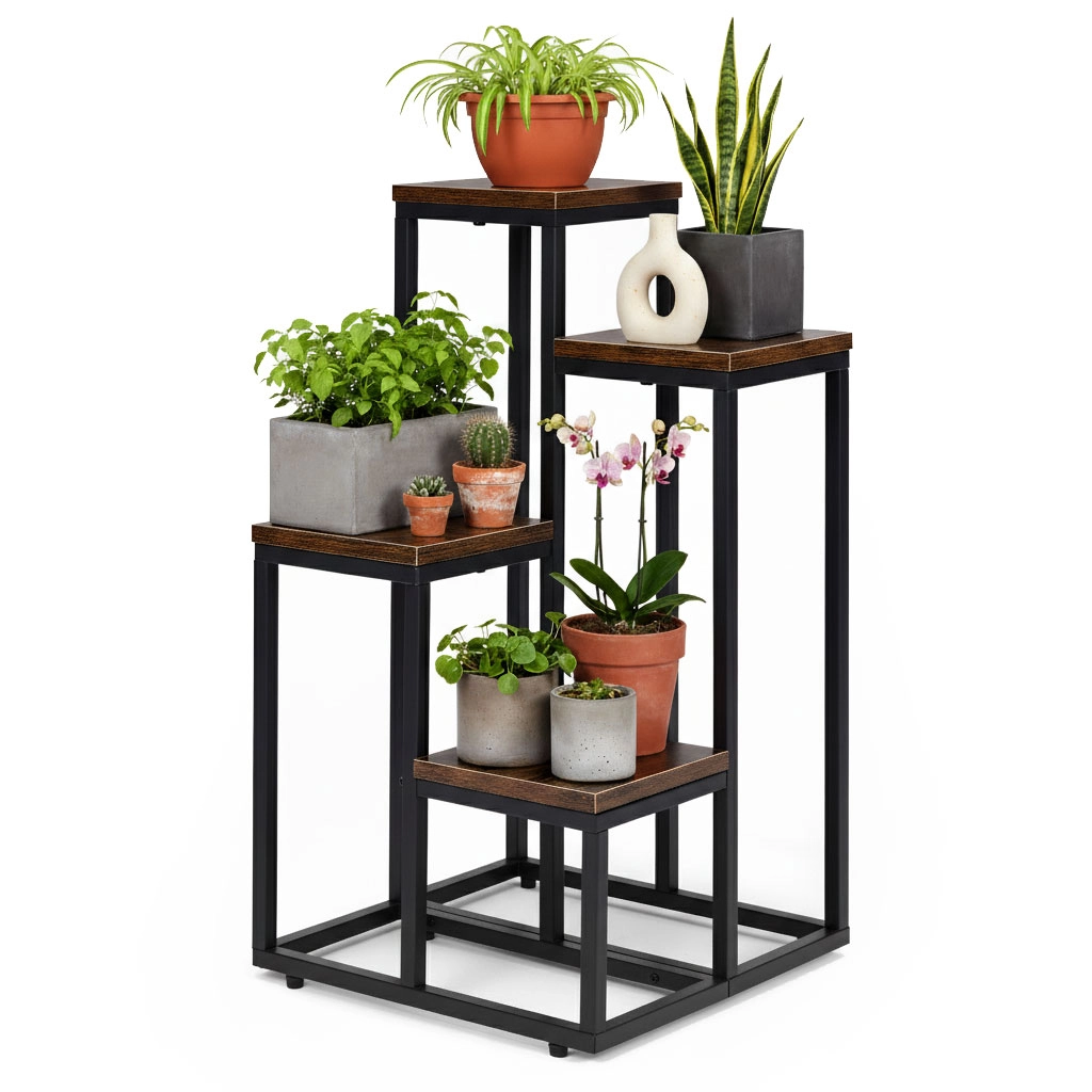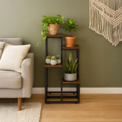 Štyri police v rôznych výškach umožnia šikovne vystaviť rôzne druhy rastlín a zaistia im lepší prístup k svetlu, bez toho aby zaberali veľa podlahovej plochy.