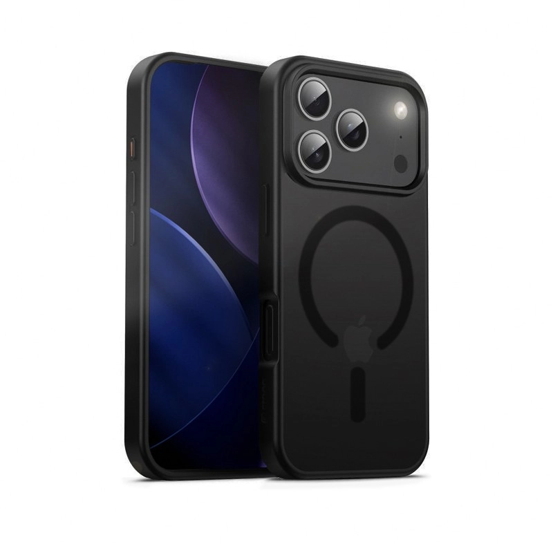 Kryt Hybrid Frost MAG pre iPhone 17 Pro kombinuje pevný polykarbonátový zadný panel s matnou úpravou, ktorá obmedzuje odtlačky prstov a udržiava telefón čistý. Integrovaný magnetický krúžok s presným polohovacím magnetom zaručuje spoľahlivú kompatibilitu so všetkým príslušenstvom MagSafe – od nabíjačiek cez držiaky do auta až po peňaženky.
