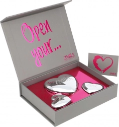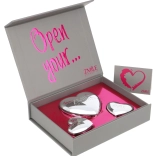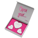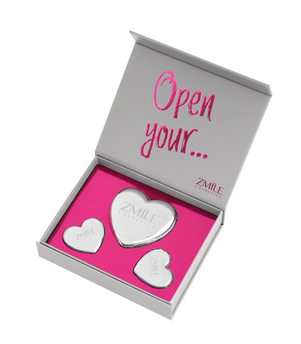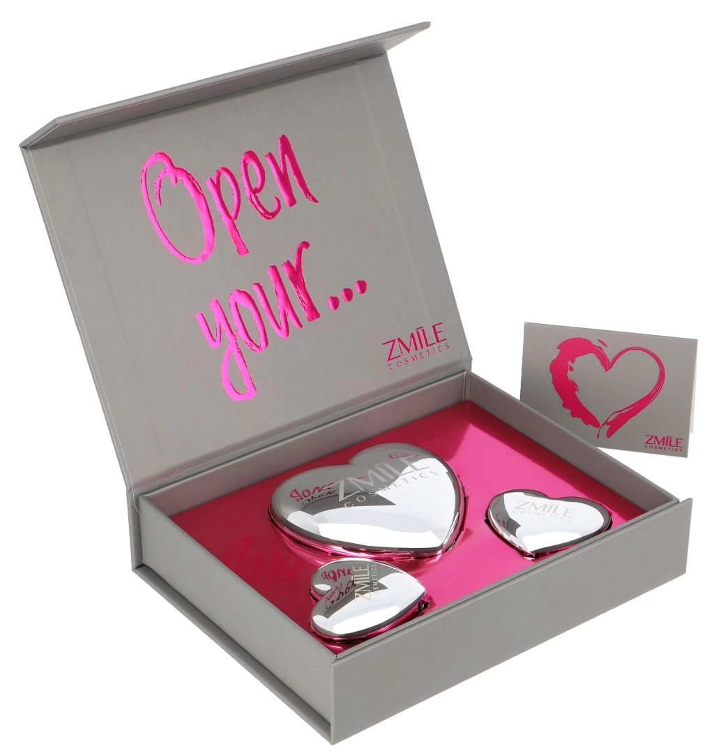 Každý produkt je uložený v elegantnom kovovom puzdre v tvare srdca s integrovaným zrkadielkom na rýchle úpravy make-upu kedykoľvek a kdekoľvek.