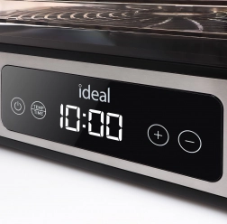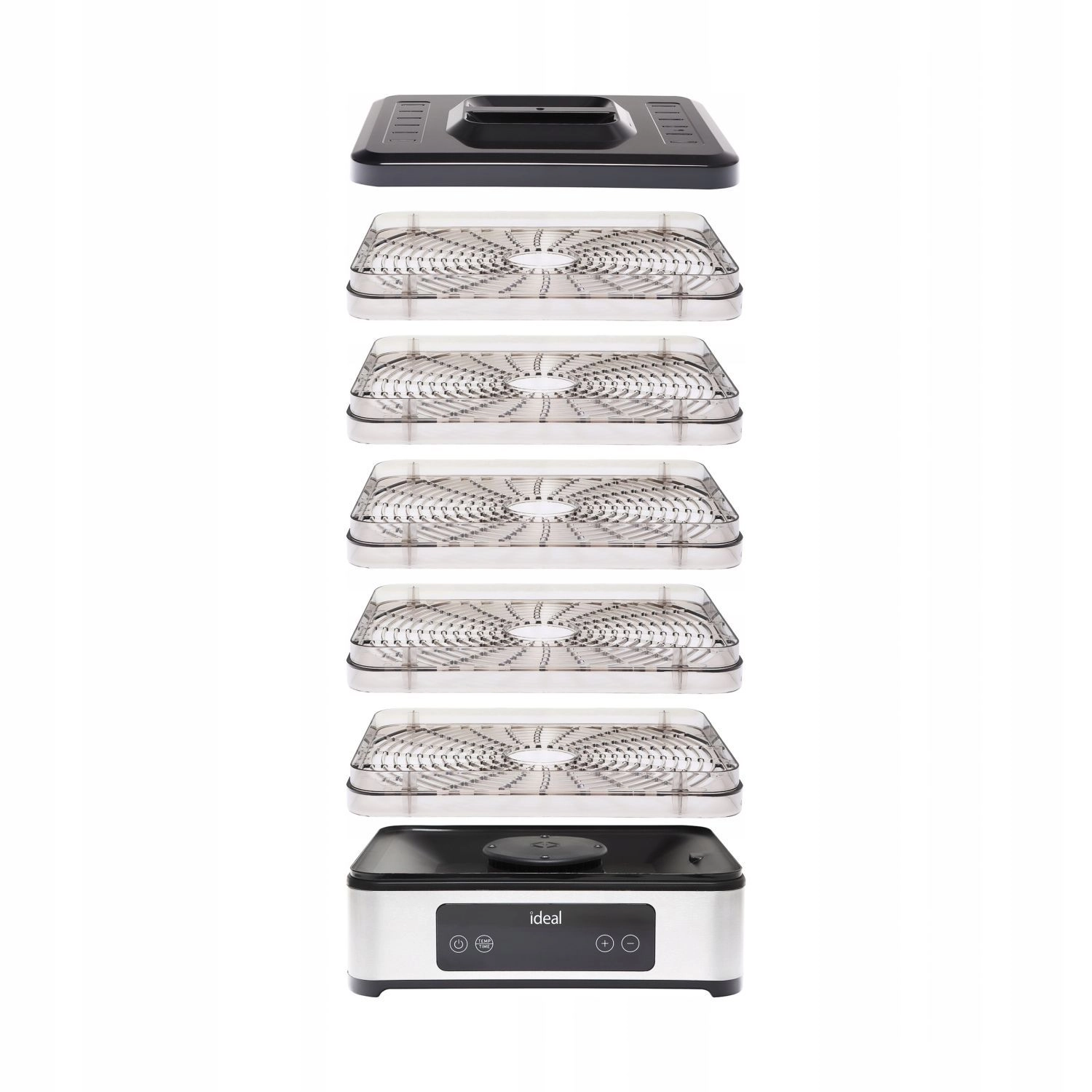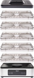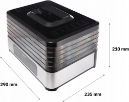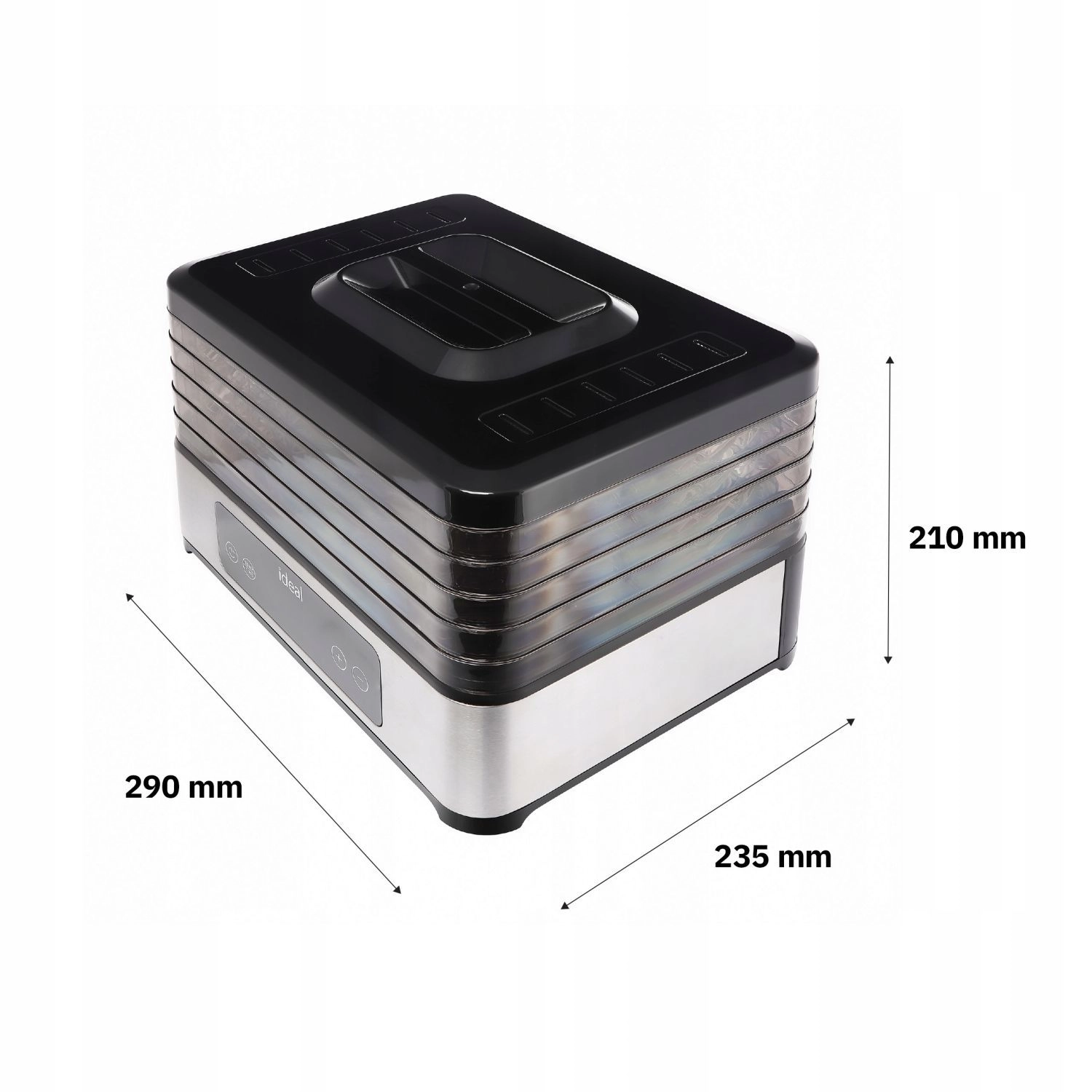 Ovládanie je maximálne jednoduché vďaka elektronickému LED panelu s časovačom 30 minút až 24 hodín. Tichá a energeticky úsporná prevádzka sa hodí na nočné sušenie, priehľadné prevedenie umožní priebežne sledovať proces bez otvárania. Tácky majú nastaviteľnú výšku pre rôzne veľkosti plátkov a zariadenie sa ľahko rozoberá a čistí.