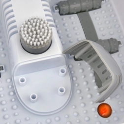 Vyberte si režim podľa potreby: bublinky pre jemné uvoľnenie, vibrácie pre intenzívnejšiu masáž, suchú masáž bez vody alebo teplú terapiu pre upokojenie unavených nôh. Ergonomický tvar vaničky, protišmyková textúra a praktické madlo uľahčujú bezpečné a pohodlné používanie v domácich podmienkach.