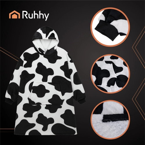 Užite si domácu pohodu v prikrývkovej mikine RUHHY XXL – kombinácii mäkučkej deky a pohodlnej mikiny s kapucňou. Vďaka oversize strihu ponúka maximálnu voľnosť pohybu, hrejivé a hrubé spracovanie na chladné večery a unisex univerzálnu veľkosť vhodnú pre každú postavu. Moderný čierno‑biely zvierací vzor z nej robí štýlový kúsok do domu aj von.