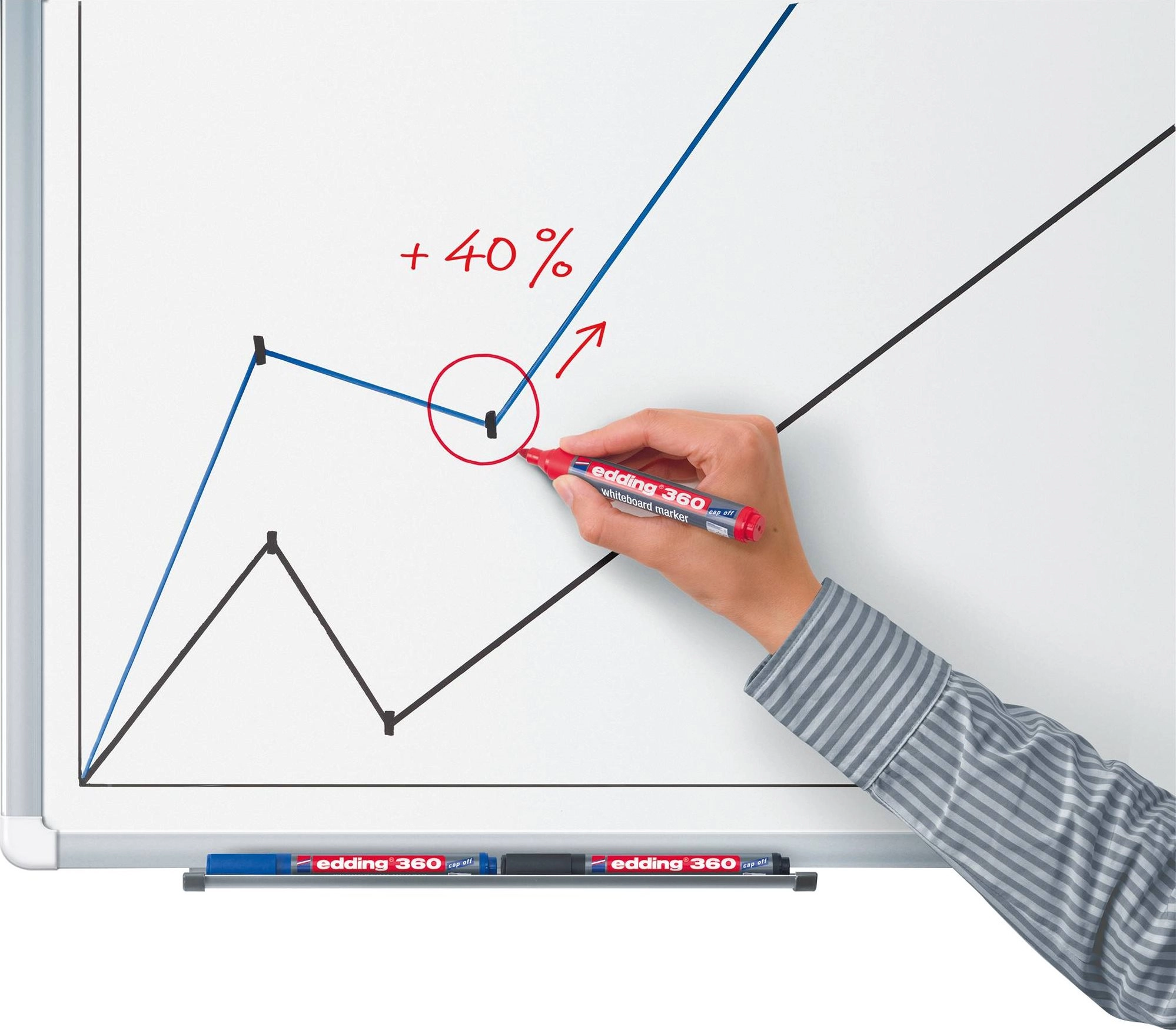 Spoľahlivý zelený značkovač na biele tabule s guľatým hrotom a suchým stieraním z neporéznych povrchov. Ponúka širokú kompatibilitu s rôznymi tabuľami, slabo zapáchajúci pigmentový atrament bez butylacetátu a šírku stopy 1,5–3 mm. Vďaka atramentu typu cap-off môže po určitý čas zostať bez uzáveru, bez toho aby vyschol.