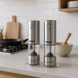 Táto univerzálna sada elektrických mlynčekov je ideálna na soľ, korenie, sušené bylinky aj ďalšie koreniny. Vďaka jednoduchému ovládaniu jedným tlačidlom a priehľadnému zásobníku máte vždy prehľad o množstve. LED svetlo pod mlynčekom uľahčuje dochucovanie aj pri slabom osvetlení.