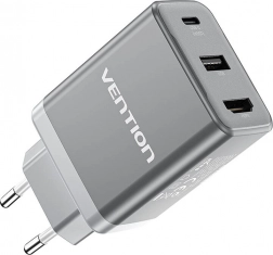 Kompaktná sieťová nabíjačka Vention s technológiou GaN kombinuje rýchle nabíjanie PD až 65 W, porty USB‑C + USB‑A a HDMI 4K@60 Hz. Nabíjajte až tri zariadenia súčasne, pripojte externý monitor a užite si univerzálnu kompatibilitu s Windows, macOS, Android a ďalšími – bezpečne vďaka inteligentnej ochrane proti prepätiu, prehriatiu aj skratu.