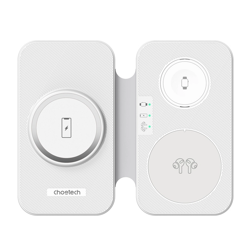 Univerzálna indukčná nabíjačka CHOETECH 3 v 1 T616-F kombinuje štýl a výkon pre súčasné nabíjanie iPhone, Apple Watch a AirPods. Ponúka rýchle bezdrôtové nabíjanie až 15 W pre kompatibilné iPhony a kompaktný skladací stojan pre pohodlné používanie v horizontálnej aj vertikálnej polohe. Nechýba inteligentná ochrana proti prepätiu, prehriatiu a skratu a elegantné prevedenie, ktoré zapadne do každého interiéru.