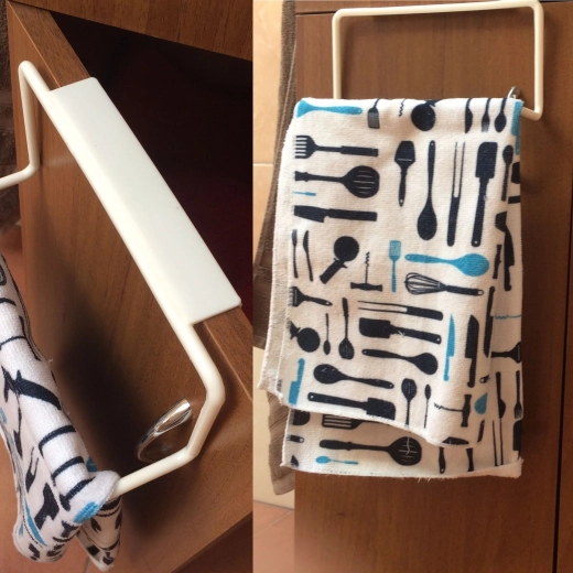 Svoje miesto nájde napríklad v kuchyni, kúpeľni alebo pracovni. Je ťažké predstaviť si prácu v kuchyni bez uteráka. Uteráky používame každý deň, utierame nimi mokré povrchy, riad alebo ruky. Preto je veľmi dôležité, aby sme uterák vždy nechali riadne uschnúť. Tento problém vyrieši praktický vešiak na uteráky, ktorý sa dá zavesiť na kuchynský nábytok, presne ako na obrázku.