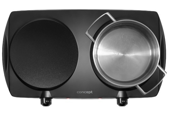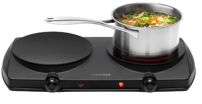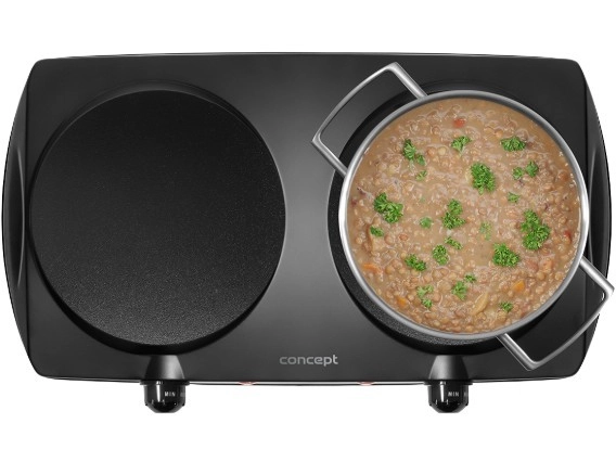 Hľadáte spoľahlivý varič do menšej kuchyne, na chatu alebo do študentského bytu? Dvojplatničkový elektrický varič CONCEPT VE3060 poskytuje výkon 2500 W a dve nezávislé varné zóny s plynulou reguláciou. Rýchle nahrievanie a stabilná teplota umožnia pohodlné každodenné varenie bez zbytočných prestojov.