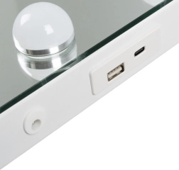 Praktické duálne napájanie (USB a 230 V) uľahčí umiestnenie do spálne aj beauty salónu. Zrkadlo možno postaviť na toaletný stolík alebo zavesiť na stenu. Štýlový hollywoodsky dizajn dodá vášmu interiéru šmrnc a podporí vašu každodennú beauty rutinu.